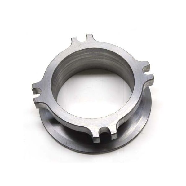 V-Band Adapter Module, Smaller 4 bolt GT/T3 2.5" to 3" V-Band. Precision 3D CNC machined STAINLESS STEEL. Allows easy transition to industry standard 3" V-band. Design criteria were ease of use and compact size. This unit does not incorporate any welds and is solid in construction. Overall height is less than 1.25". Vband side is fully compatible with any of the V-flanges and clamps that we sell as well as all of our V-band based downpipes.